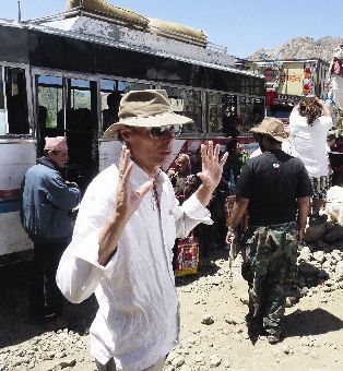 hij over stoffige wegen van dorp naar dorp. Hij maakt films, samen