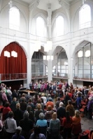 ‘Het is vrijdagavond, kwart over zeven. De deuren gaan open, mensen komen binnen, halen een kop koffie, zoeken een plaats, kijken om zich heen, maken een praatje; hier wordt wat gelachen, daar zit iemand stil voor zich uit te kijken. Dan dimmen de lichten, voorzichtig klinken er wat ijle, geïmproviseerde pianoklanken...’ Aldus het begin van Jan Kortie's meezingavonden. Info»